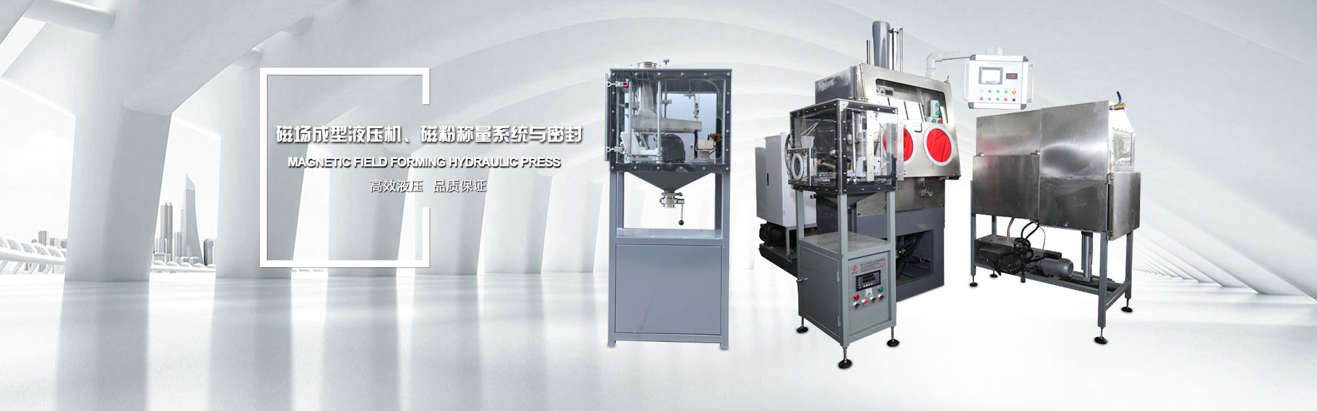 公司主要產品有全自動磁場成型壓機、半自動磁場成型壓機、磁粉自動稱量機、不銹鋼磁粉罐、進料剝料車、美式三維混粉機、雙錐混料機等,滿足磁鋼行業的需求。